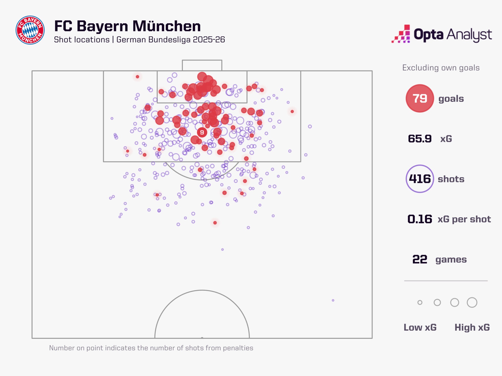 بازی کنار هری کین با 26 گل بوندسلیگایی و نرخ تبدیل شوت به گل 30.6 درصد، قطعاً به افزایش پاس گلهای اولیسه و دیاس کمک کرده. در واقع، نرخ تبدیل شوت بایرنمونیخ در بوندسلیگای این فصل 19.7 درصد است؛ بهترین آمار ثبت شده در تاریخ بوندسلیگا از 05-2004 به بعد؛ حتی بهتر از رکورد دورتموند در فصل 20-2019 با نرخ تبدیل 18.9 درصد.